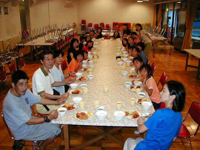 おまちかねの夕食。みんなで食べるとおいしいね。