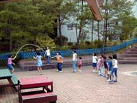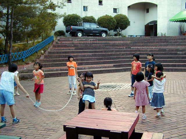 みんなで仲良く大なわとび。